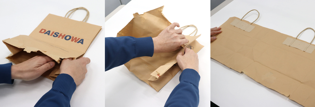 紙袋が、あっという間に大きな1枚の紙に戻ります。