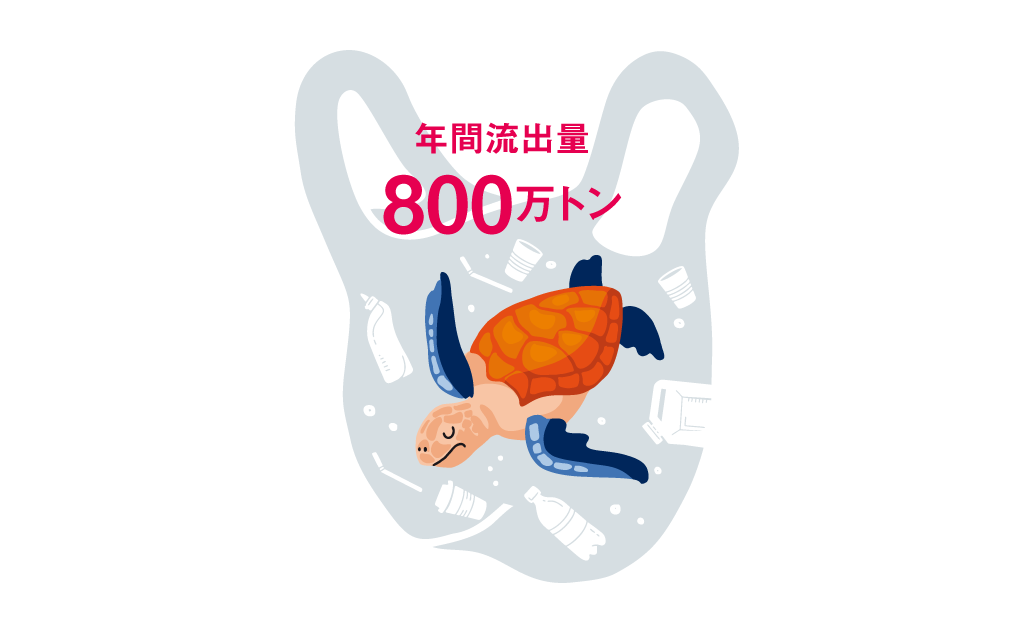 - 海に流出するプラスチックごみは年間で800万トン