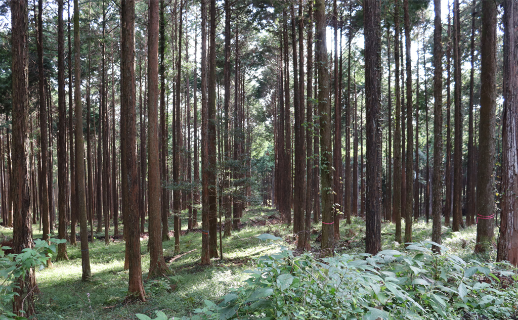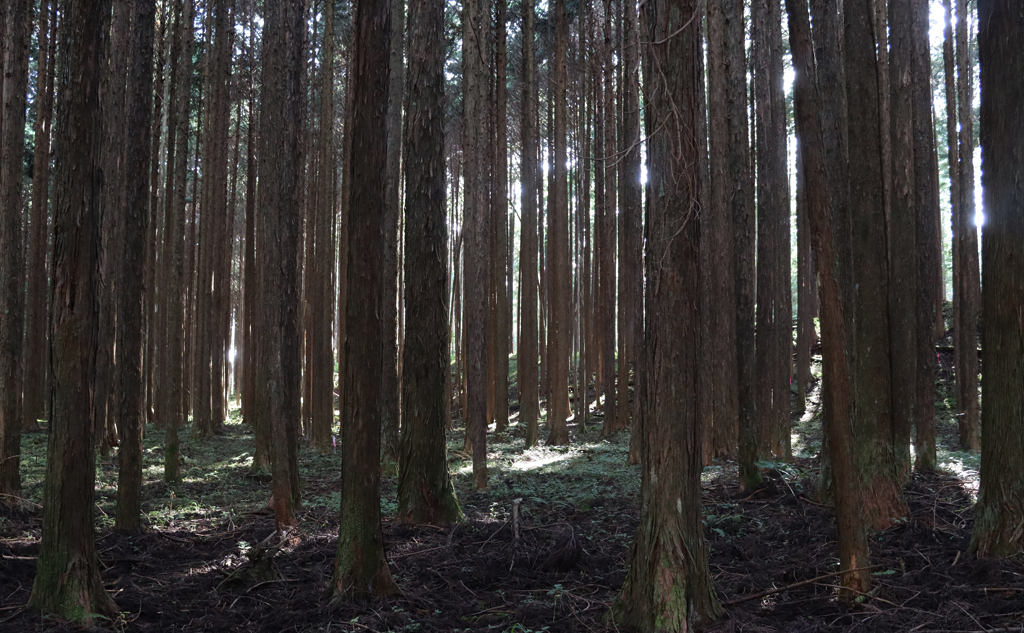 実際に森の中に来てみると、あたり一帯でヒノキのいい香りが。富士市の森林は7割がヒノキ、残りの3割が広葉樹とスギで構成されているそうです。
