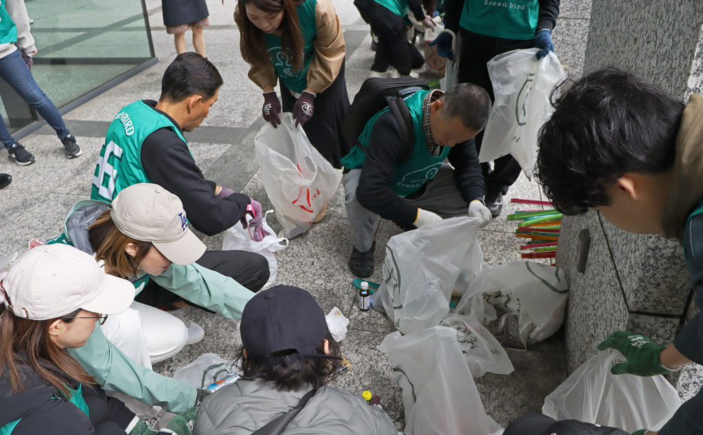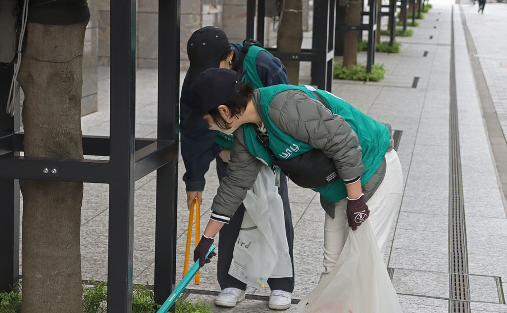 「私もこの辺りをいつも清掃しているんですよ」と声をかけてくれたのは、近隣施設の警備員さん。