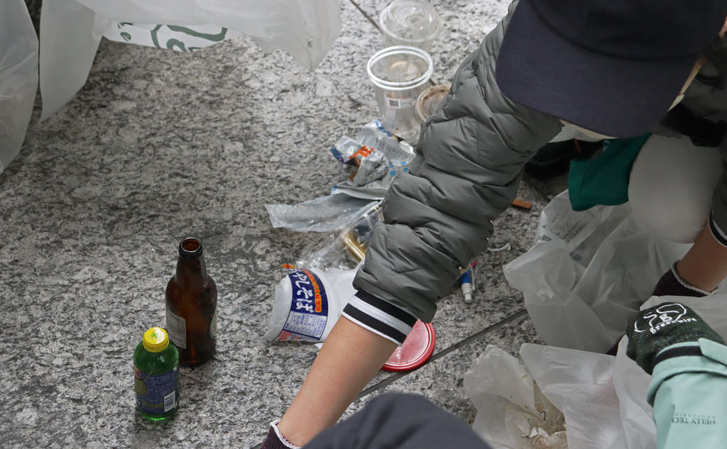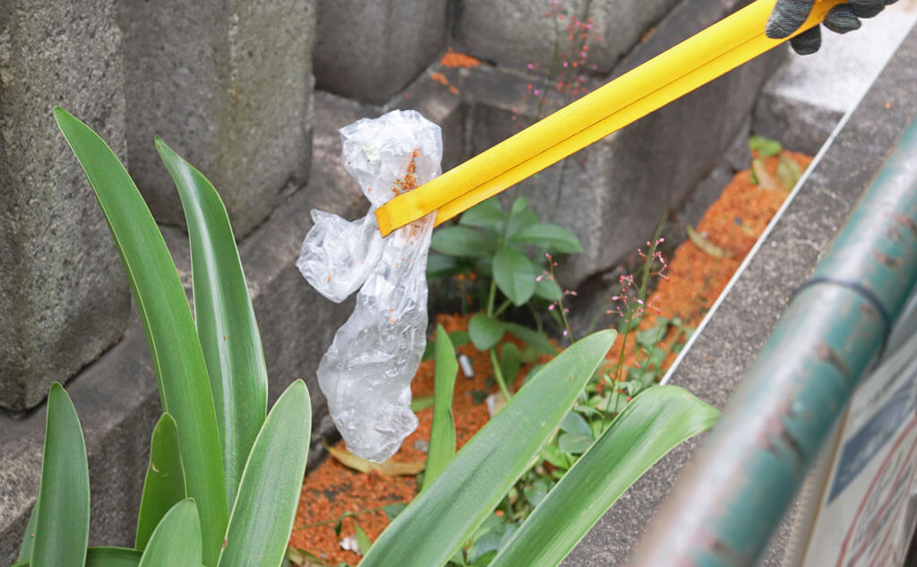 見逃さないようにチェックしながら、ごみを拾っていきます。