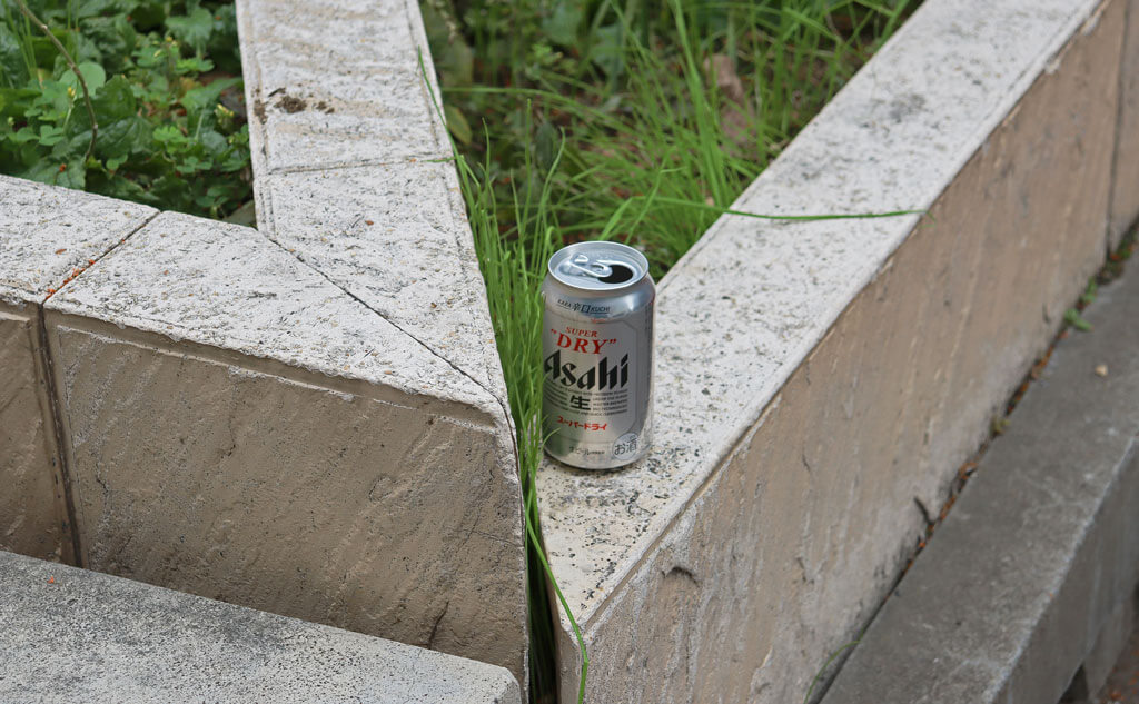 「よく見ると植え込みの奥にごみがある!」