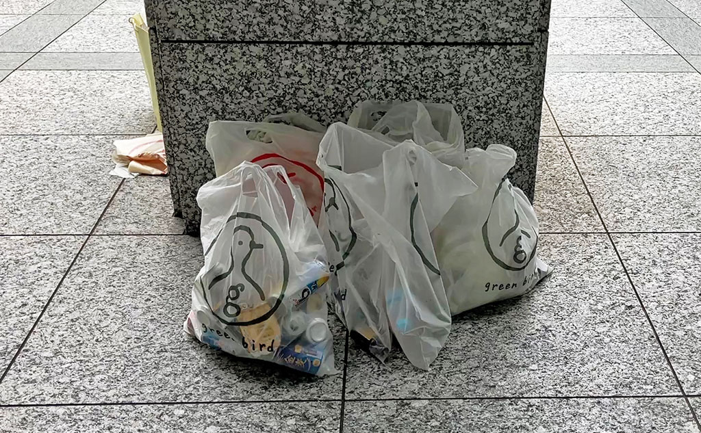 燃えるごみ、ペットボトル、缶・ビンと仕分けを進めると、袋の中はしっかりといっぱいに!