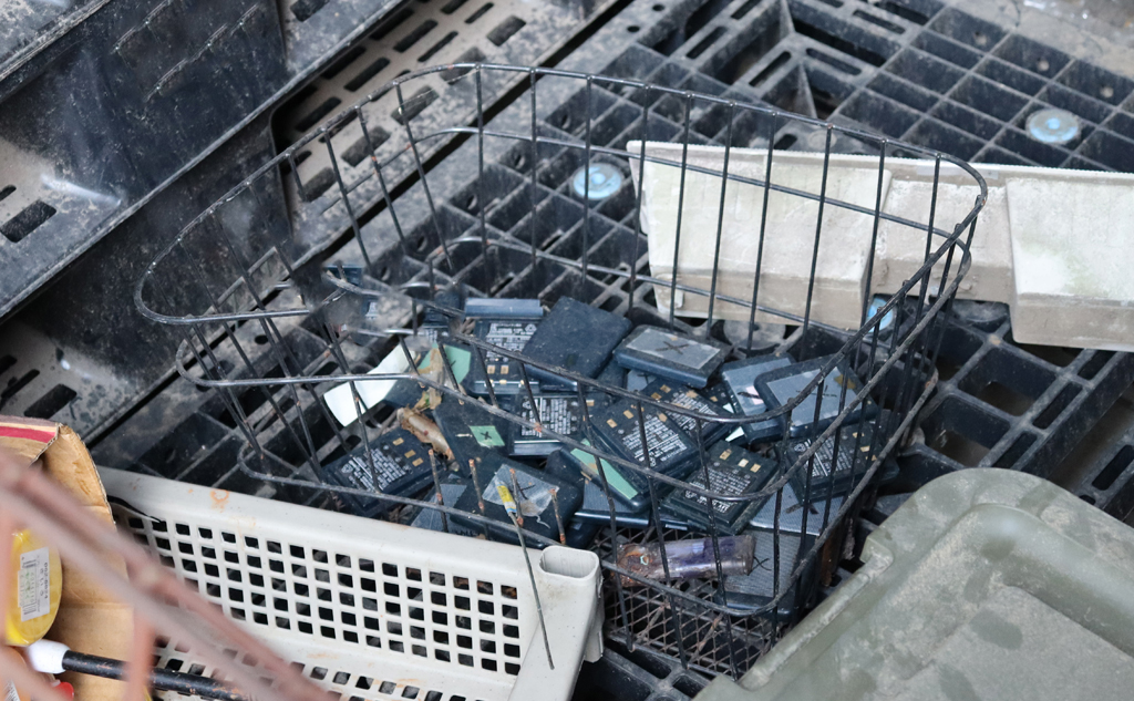 ▲選別によって丸幸さんでピックアップされたリチウムイオン電池。発火や事故の元になるので家庭でもしっかり分別しましょう。