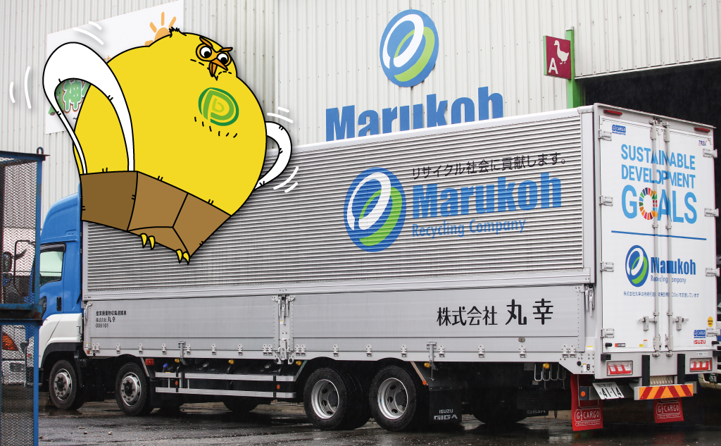 今、丸幸さんでは廃棄物処理業として「処理すること」を中心にした事業活動から、これからの環境配慮型社会の実現に向けた「資源の循環」にフォーカスした事業活動へとギアチェンジをしている最中なんだって!今回は主軸とする事業に加えて、環境問題解決の貢献にもなる「新たな取り組み」についてもお話しを聞いてきたんだホー!