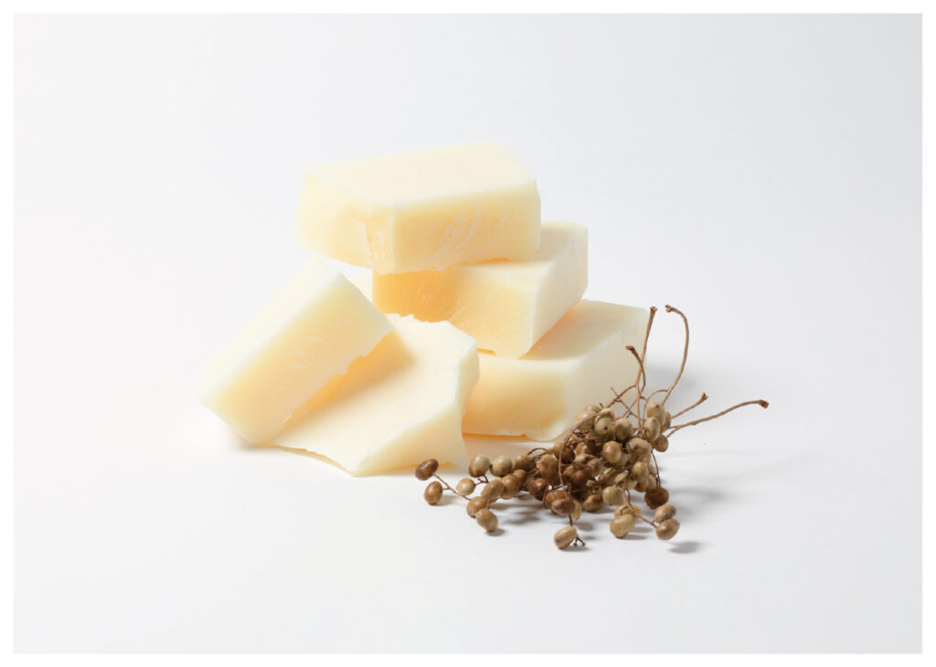 ▲鬢付け油の要の素材となる木蝋(もくろう)