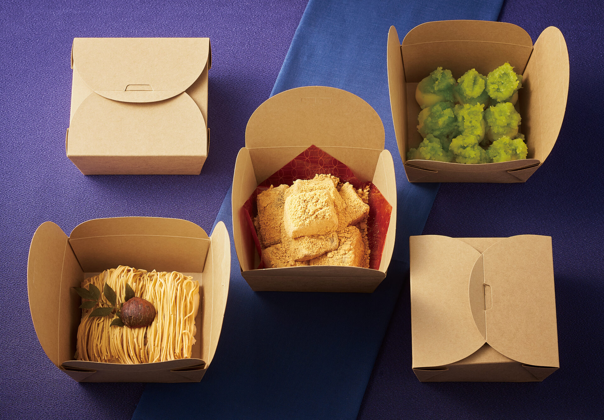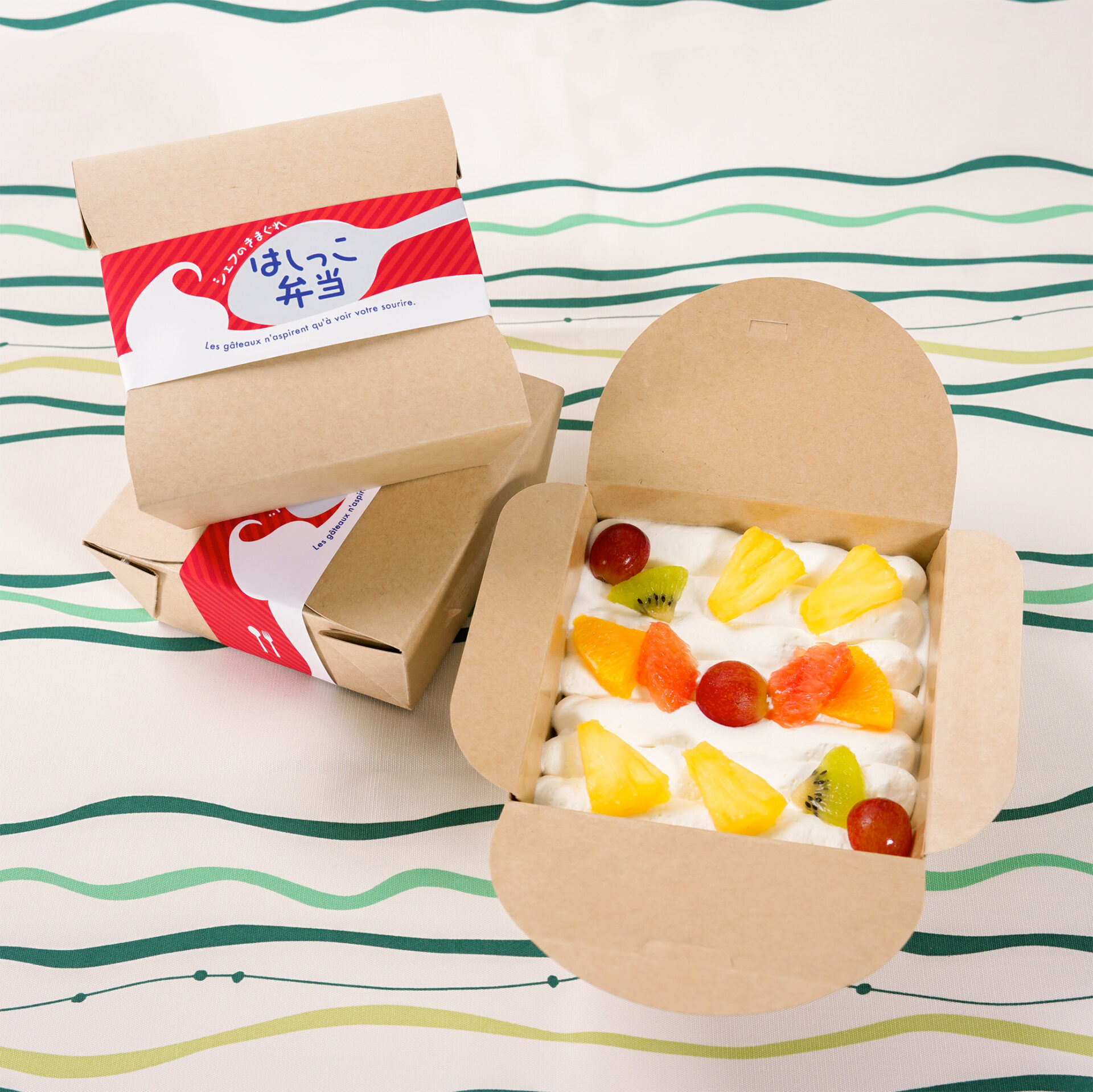 スイーツはそのまますくっても、紙箱を広げて切り分けてもお楽しみいただけます。