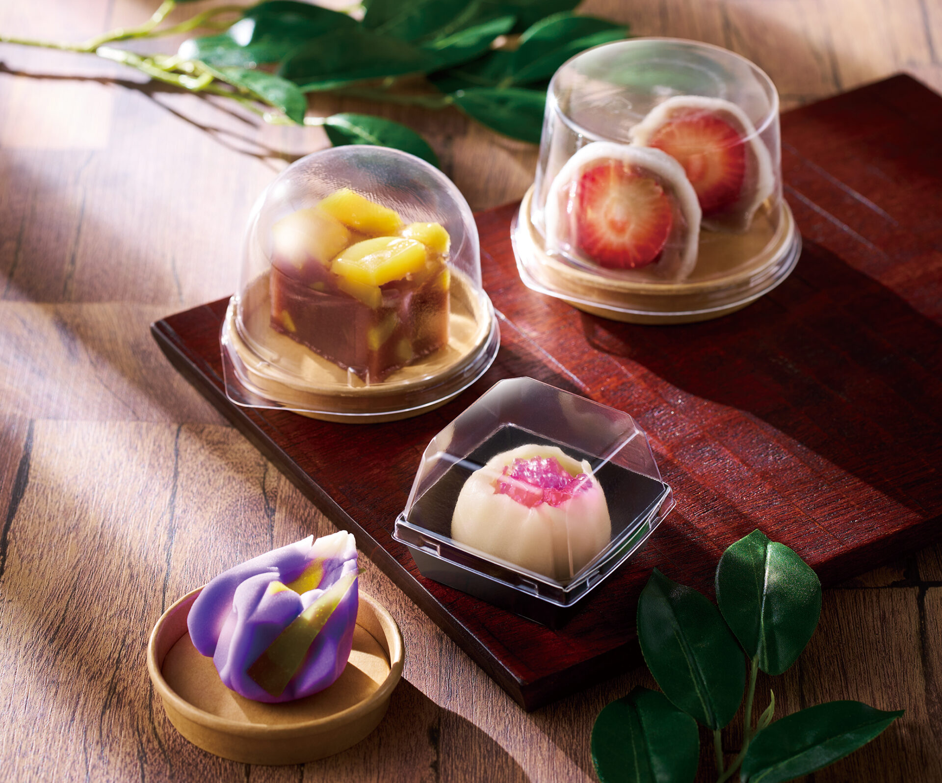 すべてのサイズに専用の蓋をご用意。78φの低蓋・高蓋、72φの中高蓋には当社オリジナル蓋を採用しています。 片手でも開けやすい設計で、特に人気の78φ用蓋はバイオPETを使用したecoタイプです。 洋菓子のケーキやカヌレから、和菓子の上生菓子・大福まで幅広くおすすめです。