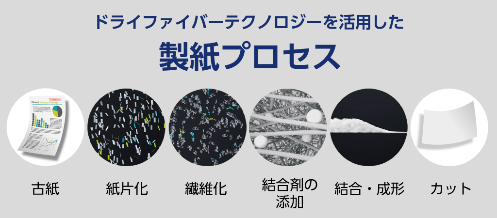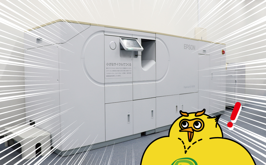 ドライファイバーテクノロジーは、水を使わず※に紙や布などのさまざまな素材を衝撃で「繊維化」し、再び価値ある素材へと加工するエプソンさん独自の技術なんだホゥ。この技術を応用した「PaperLab」は、オフィス内で紙の再生を完結させ、機密文書の安全な処理や環境負荷の大幅な削減、資源循環の効率化に貢献するんだホ〜!