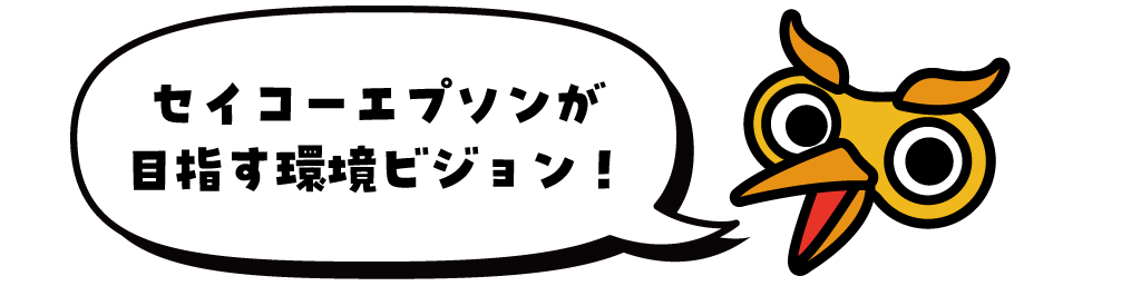 さらに「環境ビジョン2050」を制定し、2050年までに「カーボンマイナス」と「地下資源*消費ゼロ」を目標に、循環型経済の実現を推進。脱炭素、資源循環、お客様のもとでの環境負荷低減、環境技術開発の4つの側面から環境活動を展開しているんだホ!ここではエプソンさんが取り組んできた環境活動の中から4つの具体例を紹介するホ〜!